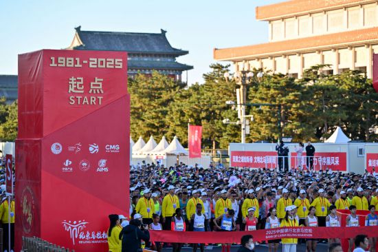 3.2万人同场竞速 2025北京马拉松天安门广场鸣笛开跑