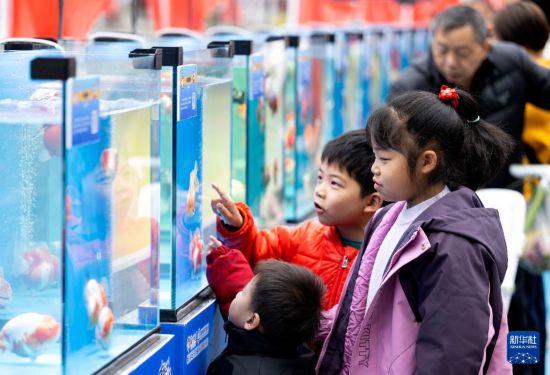 2月25日,小朋友在福州西湖公园晨曦广场观赏金鱼。 2月25日,2026年“福州金鱼城市移动会客厅”新春三部曲西湖站在福州西湖公园晨曦广场启动,35种超600尾名贵特色品种金鱼亮相展示。