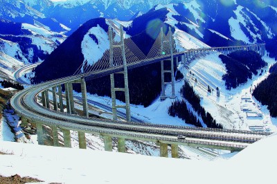 新疆果子沟大桥冬季远眺图。果子沟大桥是连霍高速的重要组成部分。新华社发