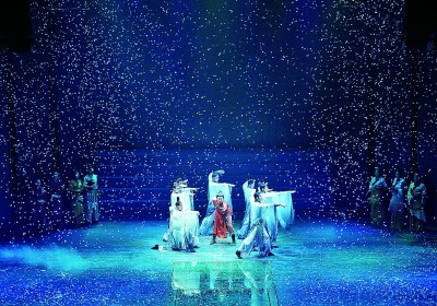 在徐州市汉纳国际演艺中心,演员在实景剧《徐州之夜·大风歌》中表演。新华社发