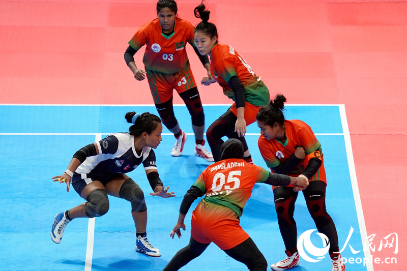 人民网杭州10月2日电 10月2日,杭州亚运会卡巴迪项目开赛。在上午进行的三场比赛中,男子组A组孟加拉国队以52:17战胜日本队,中国台北队45:24力克泰国队;女子B组尼泊尔队37:24战胜孟加拉国队。