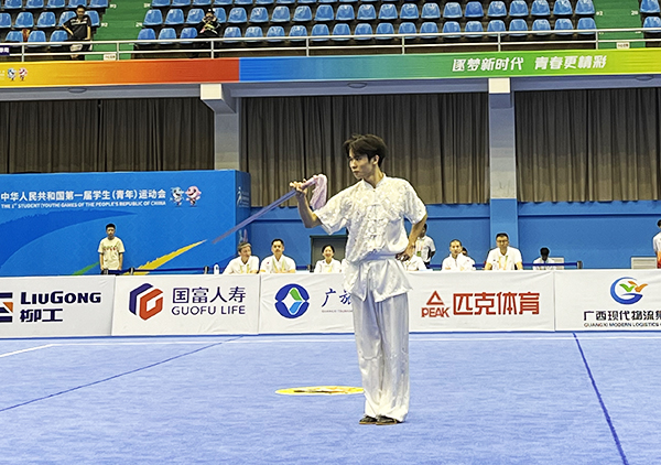 11月6日,第一届全国学生(青年)运动会武术套路(大学组)男子自选剑术比赛中。人民网记者 欧兴荣摄