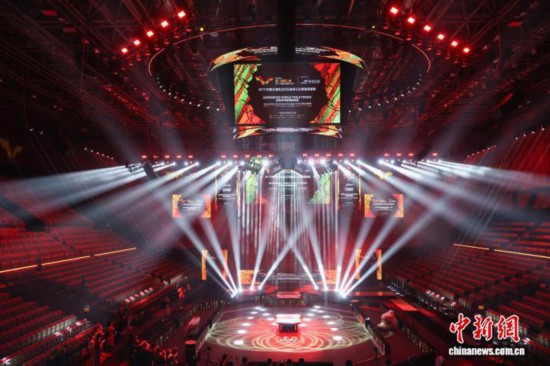 9月23日,WTT中国大满贯主场馆八极场进行灯光测试。记者 蒋启明 摄