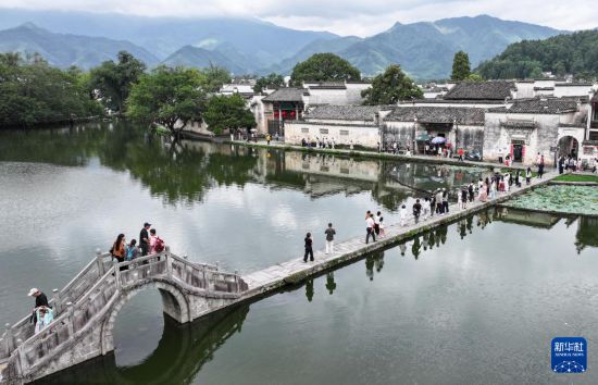 当日是国庆假期首日,世界文化遗产地安徽黄山西递宏村迎来大批游客,古朴典雅的徽派建筑和水乡美景让游人流连忘返。