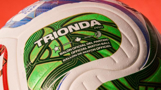 据介绍,“三重浪”(TRIONDA)一词源自西班牙语,寓意为三道波浪,其名称与设计象征着加拿大、墨西哥和美国三国首次携手举办世界杯的历史性时刻。足球颜色上整体采用红、绿、蓝三色设计,并镶嵌枫叶、雄鹰与星星等标志性图案。金色细节则向世界杯奖杯致敬。
