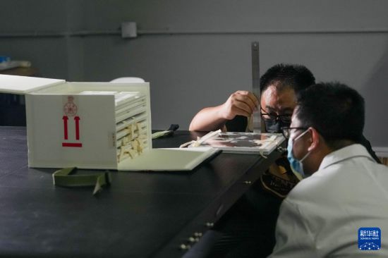 9月11日,工作人员在湖南省博物馆文物库房内准备对长沙子弹库战国帛书进行标准化影像采集。