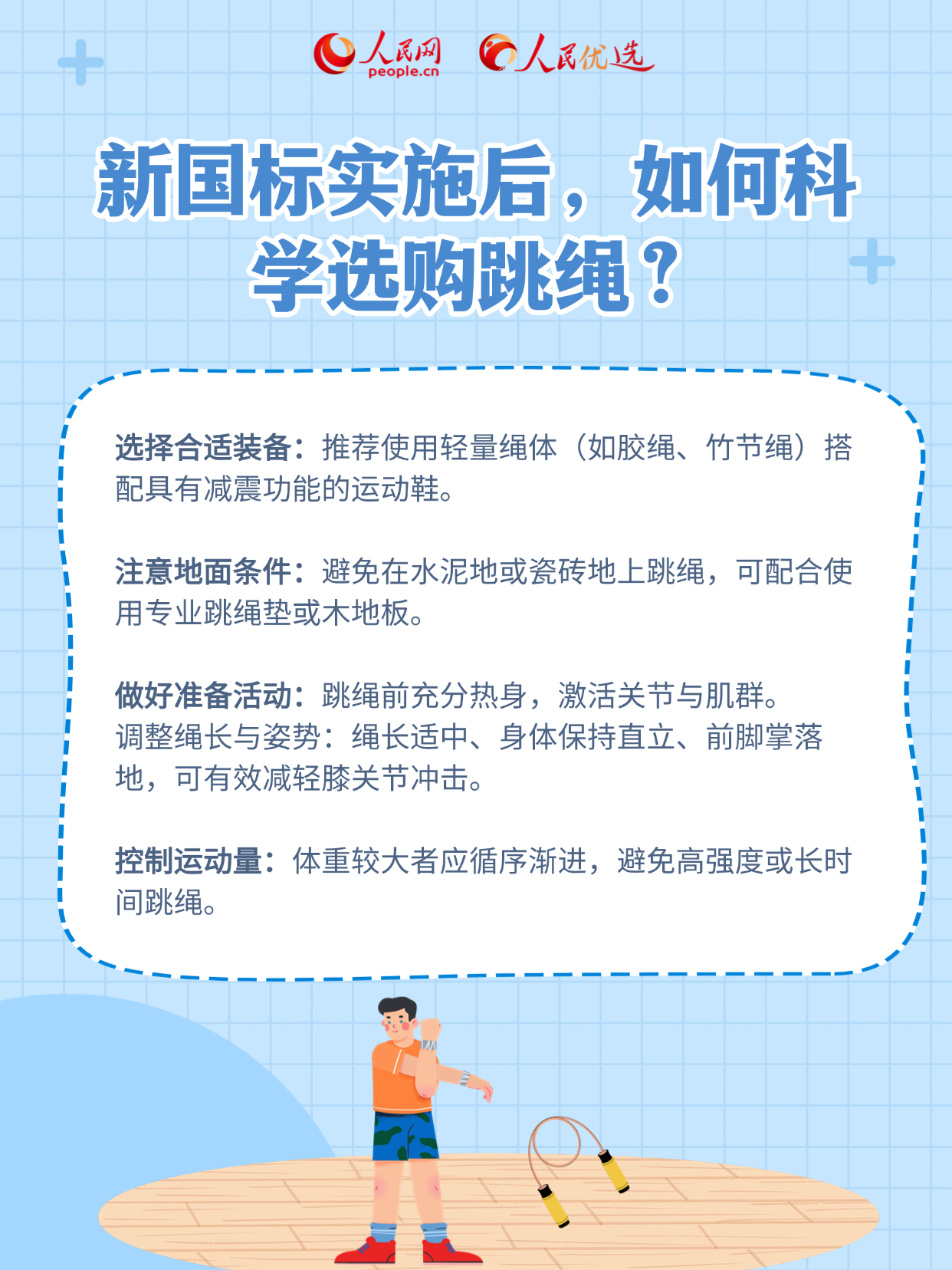 跳绳,这项看似简单的运动,其实藏着不少“学问”!从孩子体育考试到成人日常锻炼,一根小小的跳绳,选不对可能影响成绩、伤到关节,甚至存在安全隐患。为进一步规范跳绳标准,引导跳绳产业的良性发展,日前,跳绳“新国标”(《跳绳》GB/T 45544―2025)正式实施。