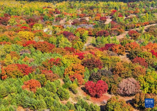 这是10月18日拍摄的乌旦塔拉五角枫森林公园美景(无人机照片)。