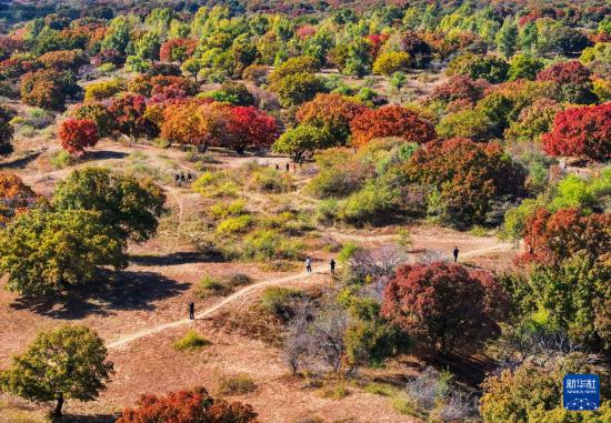 这是10月18日拍摄的乌旦塔拉五角枫森林公园美景(无人机照片)。