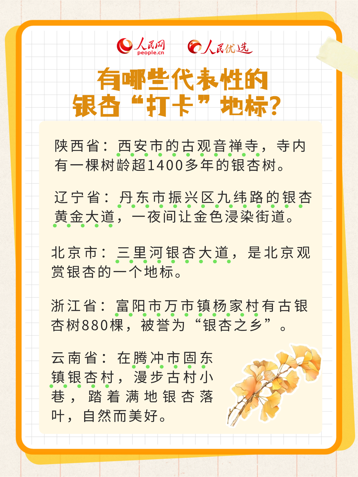 又是一年落叶黄,当金黄的银杏悄悄为城市与山林添上“秋日滤镜”,这份季节限定的浪漫便刷屏了人们的视线。大家举起相机、拿起画笔、拾起落叶,都想把金色的温柔收藏进记忆里。除了颜值能打、超级“出片”,关于银杏树背后的故事,你又了解多少呢?本期《人民优选来了》带你一起解锁银杏的冷知识,感受这份满树金黄的秋日馈赠!
