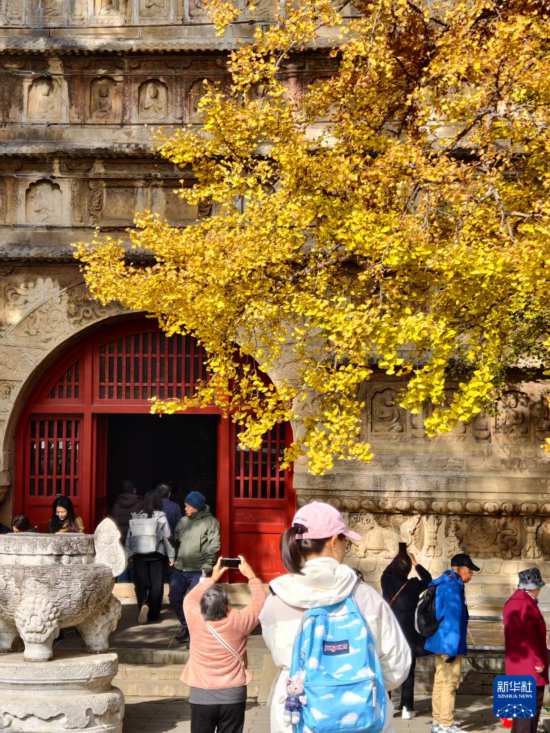 深秋时节,北京石刻艺术博物馆(也称五塔寺)内银杏尽黄,吸引众多市民、游客前来观赏。