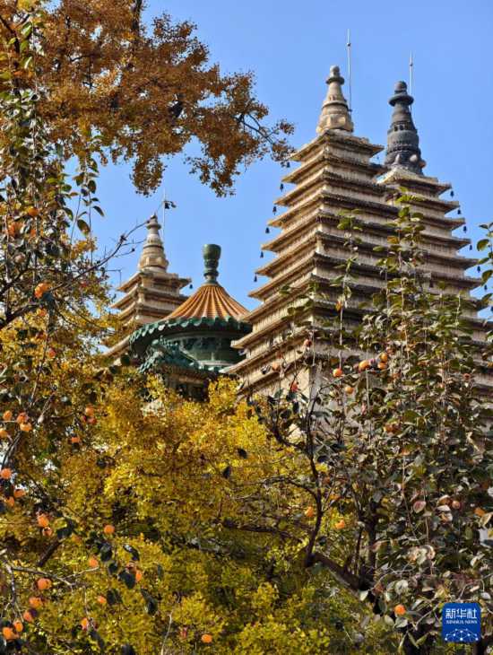 深秋时节,北京石刻艺术博物馆(也称五塔寺)内银杏尽黄,吸引众多市民、游客前来观赏。