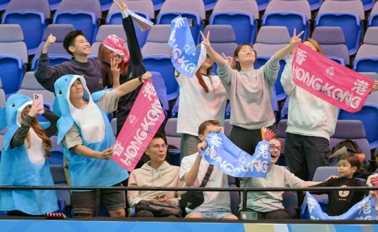 “球迷加油声热烈,现场激情满满。”在香港工作的吴小姐说,她和30多名同在香港浙江青年会的伙伴相约来红馆观赛。“在全运会的赛场,我们看到了来自全国各地青年的风采,特别是我们今天观看的22岁以下的年轻运动员。他们虽然来自不同地方,但都展现着运动的激情,彼此之间也在友好地交流。我觉得这是件很幸福的事。”