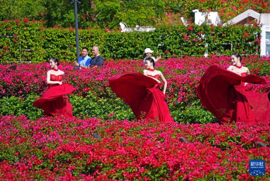 11月15日,演员在广西南宁市青秀山风景区三角梅花园演出。
