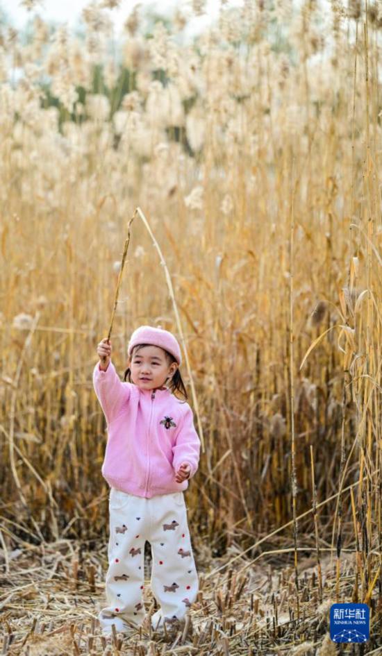 11月15日,一名小女孩在北京园博园的一片芦苇荡中玩耍。