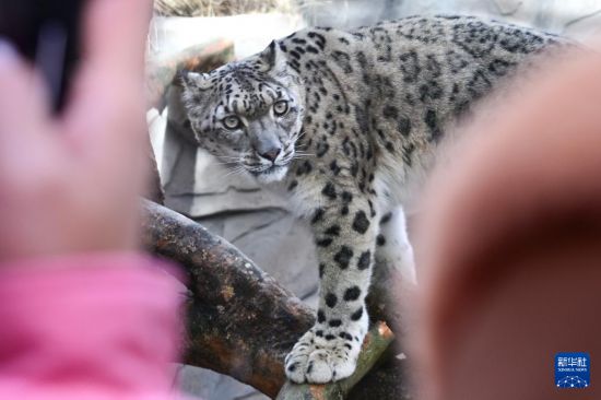11月15日,在青海省西宁野生动物园,游客与雪豹互动。