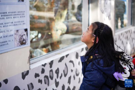 11月15日,在青海省西宁野生动物园,一名小朋友在阅读雪豹的救助故事。