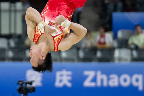 第十五届全国运动会体操单项决赛16日在广东肇庆决出了5个单项的金牌,贵州、江西、广西、福建和辽宁各取一金,其中奥运冠军刘洋卫冕男子吊环项目,伤愈归来的邱祺缘则拿到个人首枚全运会金牌。
