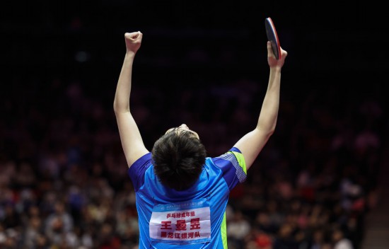 11月16日,黑龙江队选手王曼昱庆祝获得全运会乒乓球女子单打冠军。新华社记者 陈斌 摄