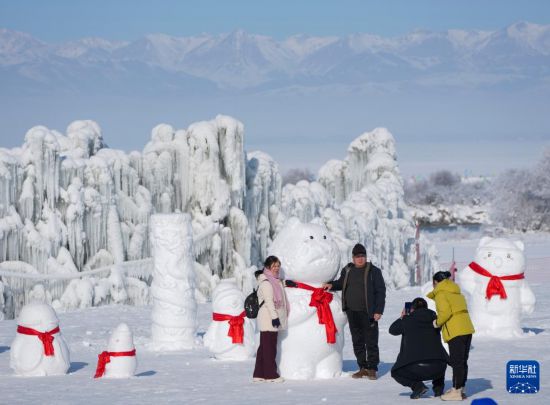 1月3日,游客在新疆昭苏县冰雪乐园游玩。