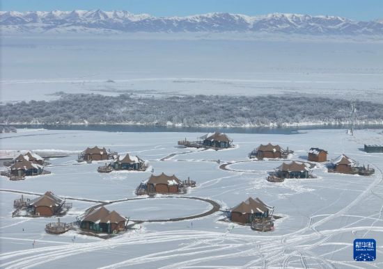 这是1月3日在新疆昭苏湿地公园拍摄的一处营地(无人机照片)。