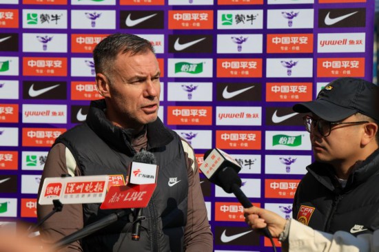 1月6日,中国女足主教练安特·米利西奇在场边接受采访。新华社记者 毛思倩 摄