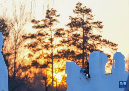 原标题:雪雕艺术家冰城秀技艺