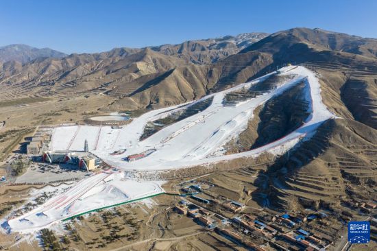 位于山阴县广武镇的广武国际滑雪场全景(无人机照片,1月8日摄)。