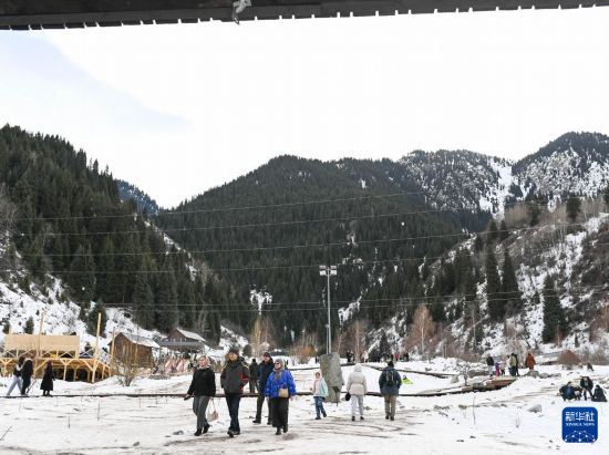 近日,哈萨克斯坦阿拉木图市郊山区被冰雪覆盖,人们纷纷到户外享受冬日雪趣。