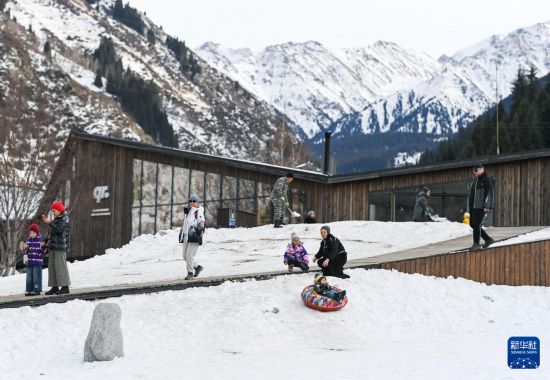 近日,哈萨克斯坦阿拉木图市郊山区被冰雪覆盖,人们纷纷到户外享受冬日雪趣。