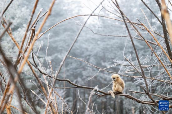 1月19日,金丝猴在神农架国家公园大龙潭金丝猴野外研究基地山林中活动。