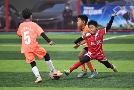 在天津市足协青训基地,天津市足协青训中心青少年球员进行对抗训练(资料图)。新华社记者 孙凡越 摄