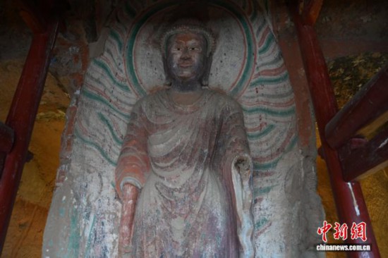 图为千佛洞第1窟内造像。(资料图) 戴文昌 摄