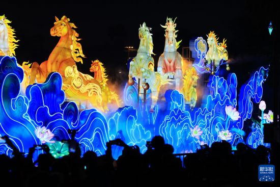 1月30日拍摄2026广州新春灯会展出的“万马奔腾”灯组。