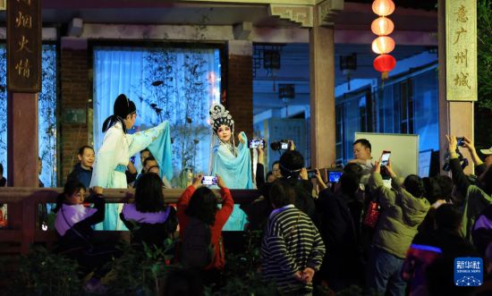1月30日,市民和游客在2026广州新春灯会上观赏粤剧表演。