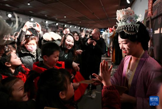 2月13日,游客在银川市西夏陵景区与演员互动。