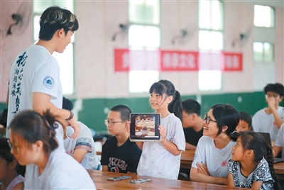 湖南省怀化市通道侗族自治县万佛山镇木脚村,大学生在给孩子们上趣味AI实验课。 |