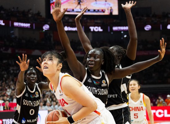 ↑3月14日,中国队球员李月汝(前)在比赛中寻找进攻机会。当日,在武汉举行的2026年女篮世界杯资格赛A组比赛中,中国队86:76战胜南苏丹队。新华社记者肖艺九摄