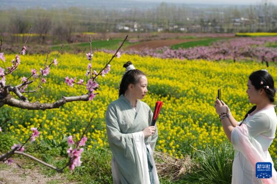 眼下,位于秦岭终南山脚下的西安市长安区王莽街道6800余亩桃花盛开,当地举办桃花诗歌会等文旅活动,吸引众多游人踏春赏花。