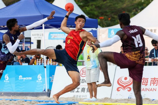 21日,第六届亚洲沙滩运动会在海南三亚迎来首个比赛日的争夺,中国队在男子沙滩手球预赛中收获一胜一负。