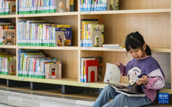 4月23日,小朋友在贵州省图书馆内读书。